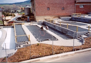 Beete sind fertig betoniert. Überall schauen noch die Rohre der Zu- und