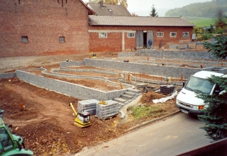 Gärtnerei wurde eine Trockenmauer aus Buntsandsteinen errichtet,
